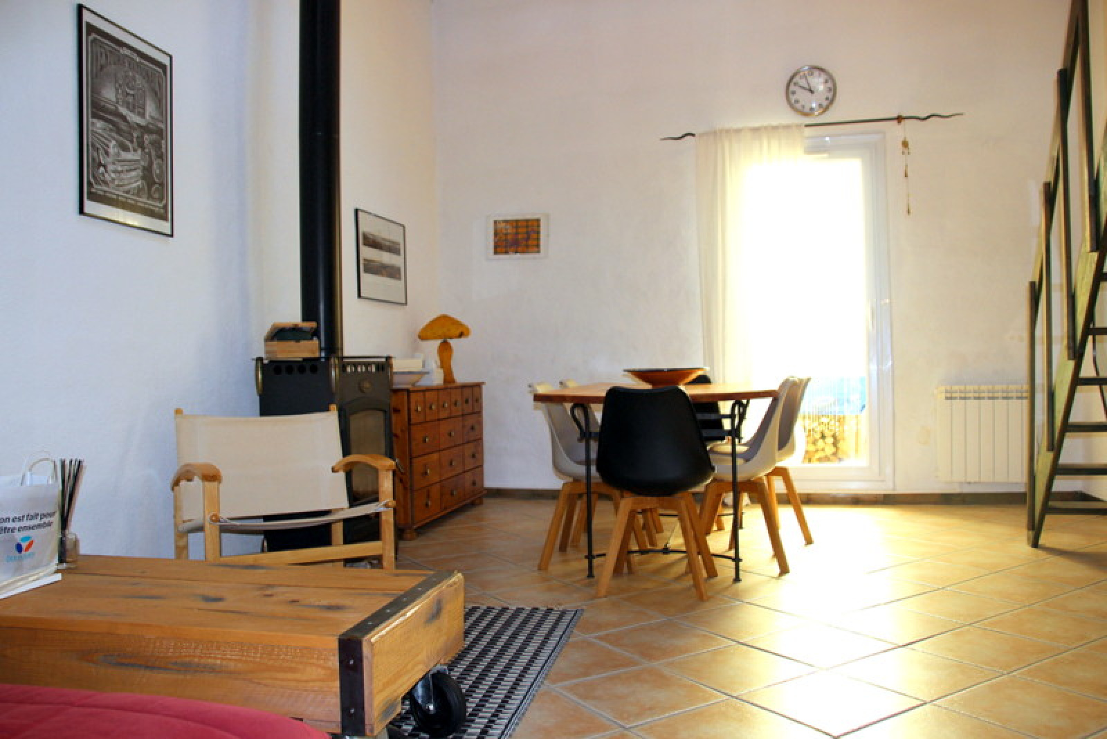 Elle saura vous séduire par son vaste espace de vie réparti entre son séjour / salle à manger avec poêle à bois de 20.5 m² surplombé par une mezzanine avec baie vitrée, aménagée en salon TV ou lecture. Une grande cuisine indépendante et une salle de bains avec wc sont sur le même niveau.