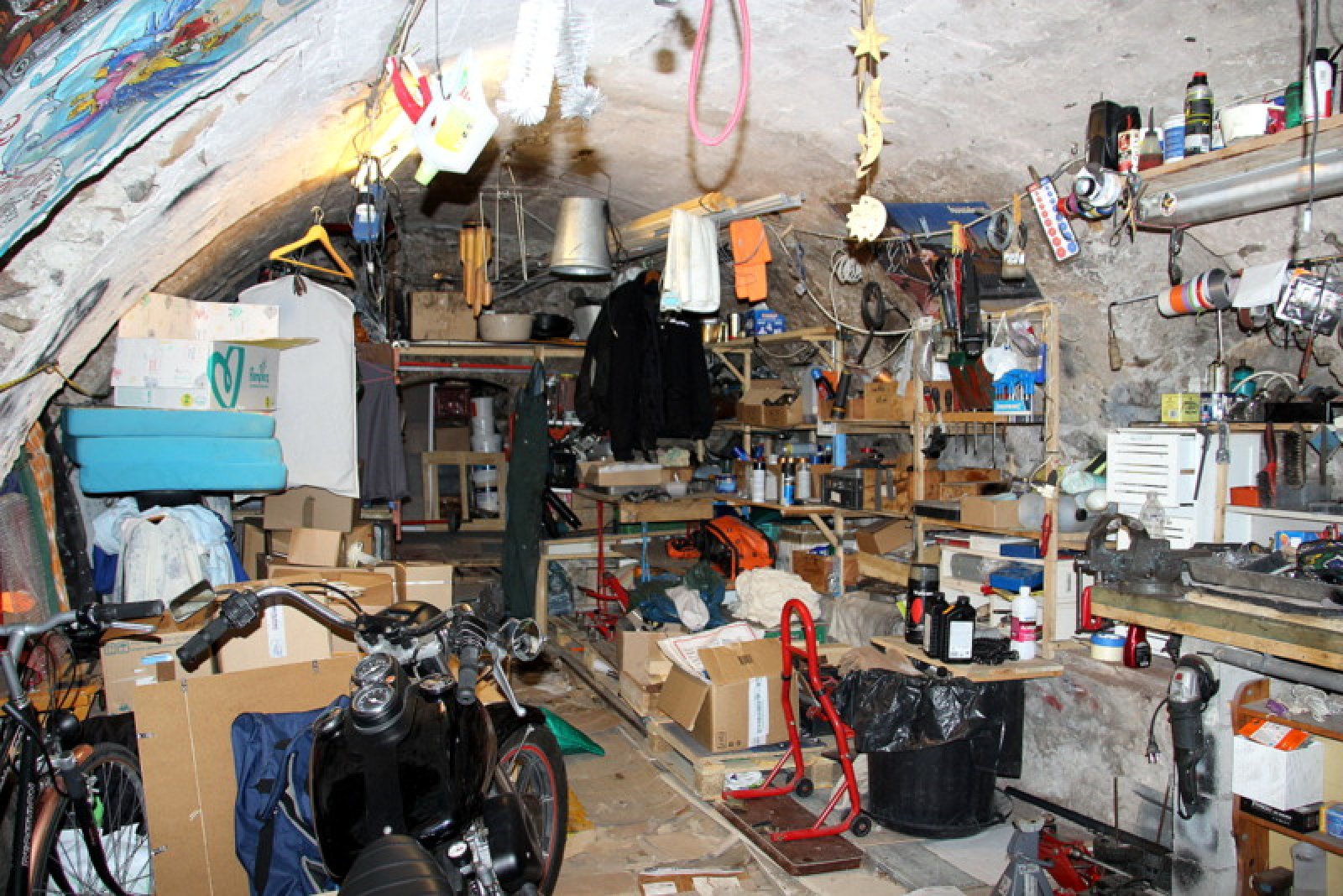 En descendant les escaliers, on accède à l'espace nuit avec les deux chambres et les wc séparés et en rez-de-rue où se situe la deuxième entrée de la maison, un vaste atelier / cave ravira les bricoleurs.