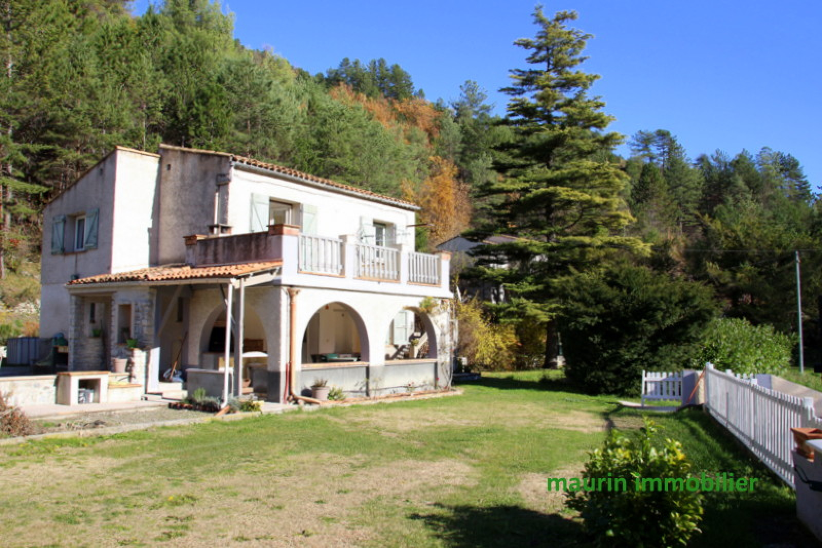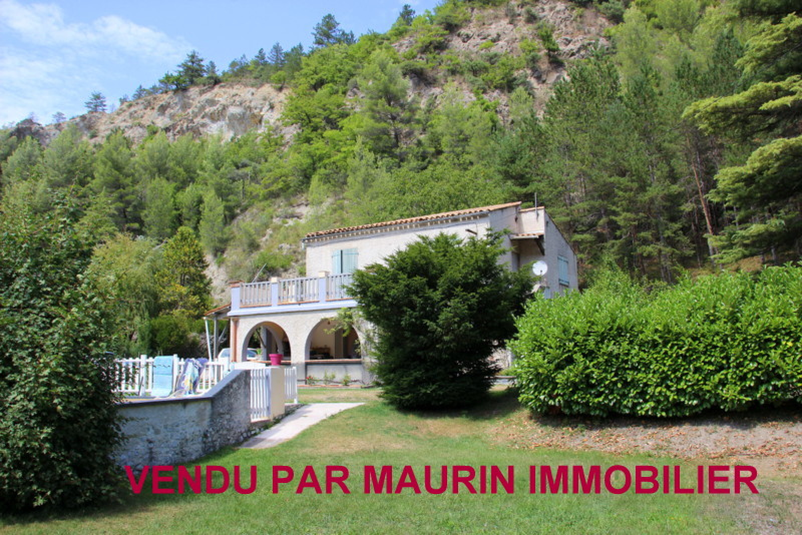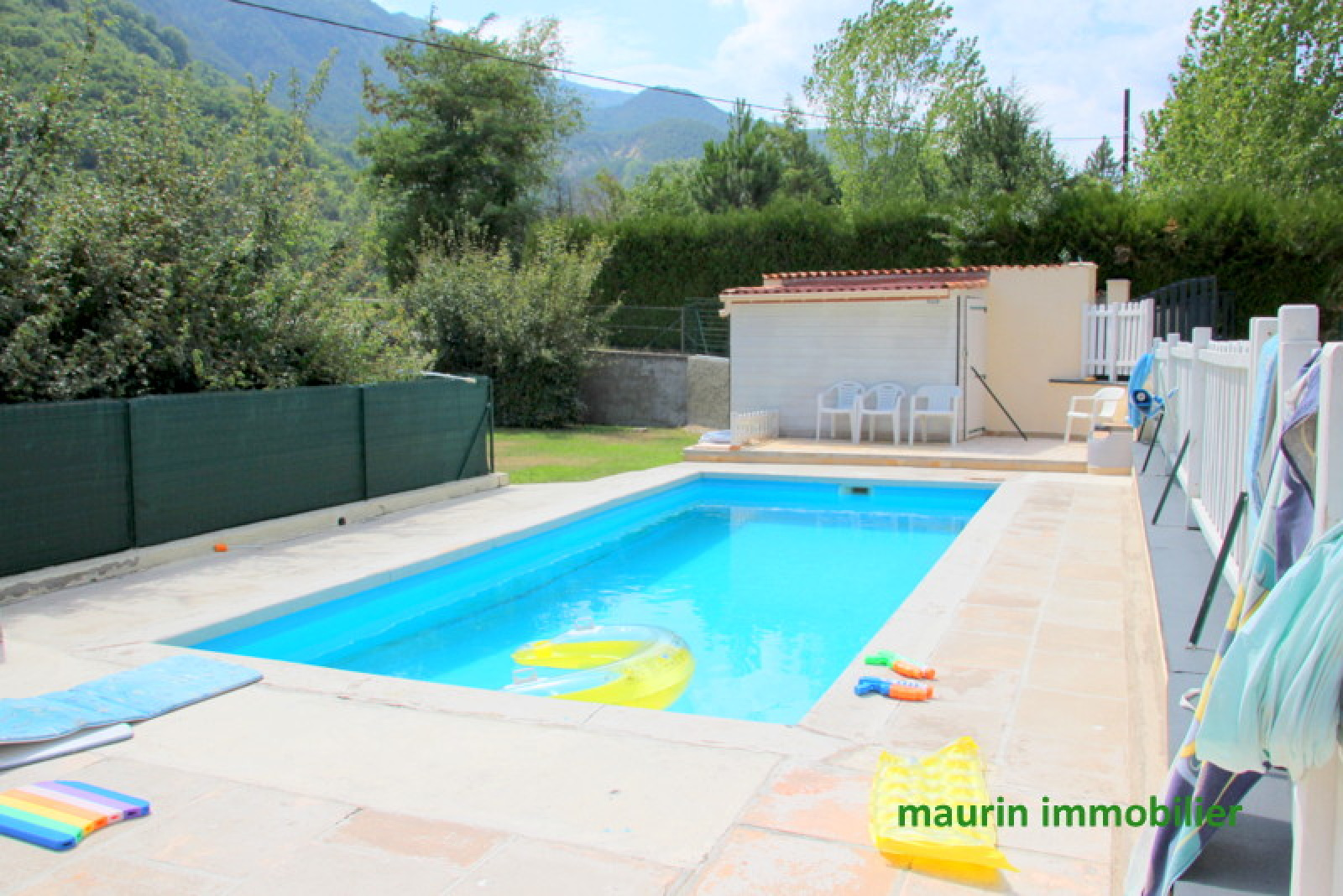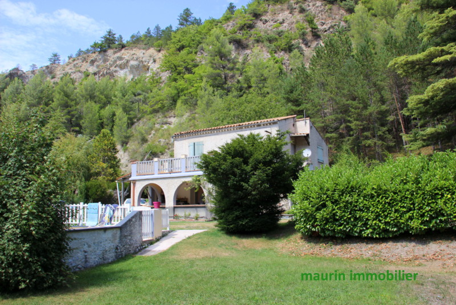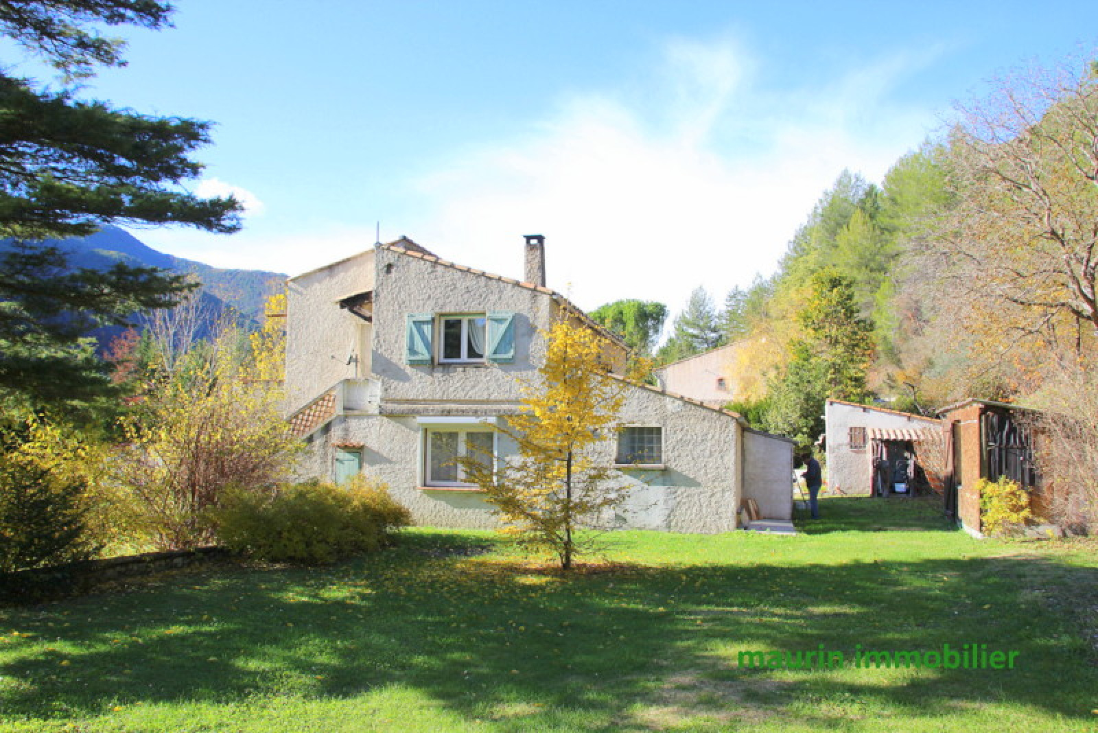 VENDU PAR MAURIN IMMOBILIER: Maison de 122m² habitables sur 6269m² de jardin avec piscine et garage. Confortable et lumineuse, elle offre au rez-de-jardin : séjour, salon avec cheminée insert et cuisine aménagée ouvrant sur la terrasse couverte (18m²), entrée avec placards, salle de bains et wc séparés, puis à l'étage 4 chambres dont une avec terrasse de 19m², salle d'eau/wc. Le terrain se compose d'un vaste jardin plat complanté avec piscine. Sur l'arrière de la maison une pinède d'environ 3500m² complète le paysage. Garage et abris jardin. A 30 minutes de Carros; le village de Puget-Théniers offre écoles, collèges, crèche et commerces.