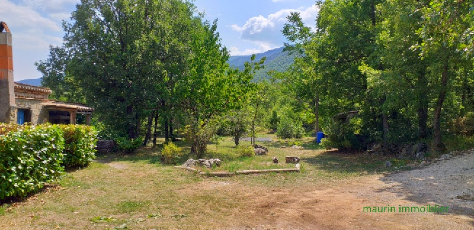 VENDU. Une situation unique pour ce lieu rempli de charme. Cette campagne se compose d'une maison de 5 pièces sur vaste terrain de 1,3 ha. Elle offre un séjour avec cheminée, un salon avec poêle à bois ouvrant sur une terrasse couverte, une cuisine puis à l'étage : deux chambres dont une avec salle de bains/wc, un bureau ou chambre d'appoint et salle d'eau/wc. Cave. De toutes les ouvertures vous pourrez contempler un panorama exceptionnel, sans vis à vis ! Terrain très agréable, plat autour de la maison et le reste en pente douce, complanté de chênes et de fruitiers, abri bois et atelier. Dernière maison du chemin au coeur de la forêt. Habitable tout de suite mais prévoyez quelques travaux. A 1H10 de Nice Ouest et 10 minutes des commodités.